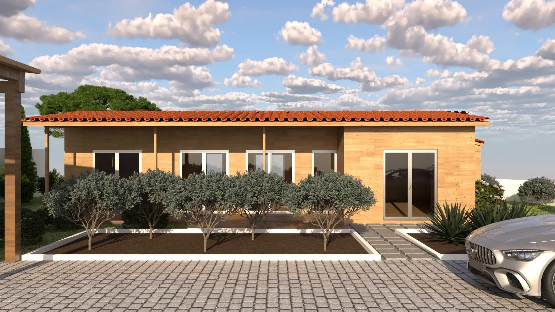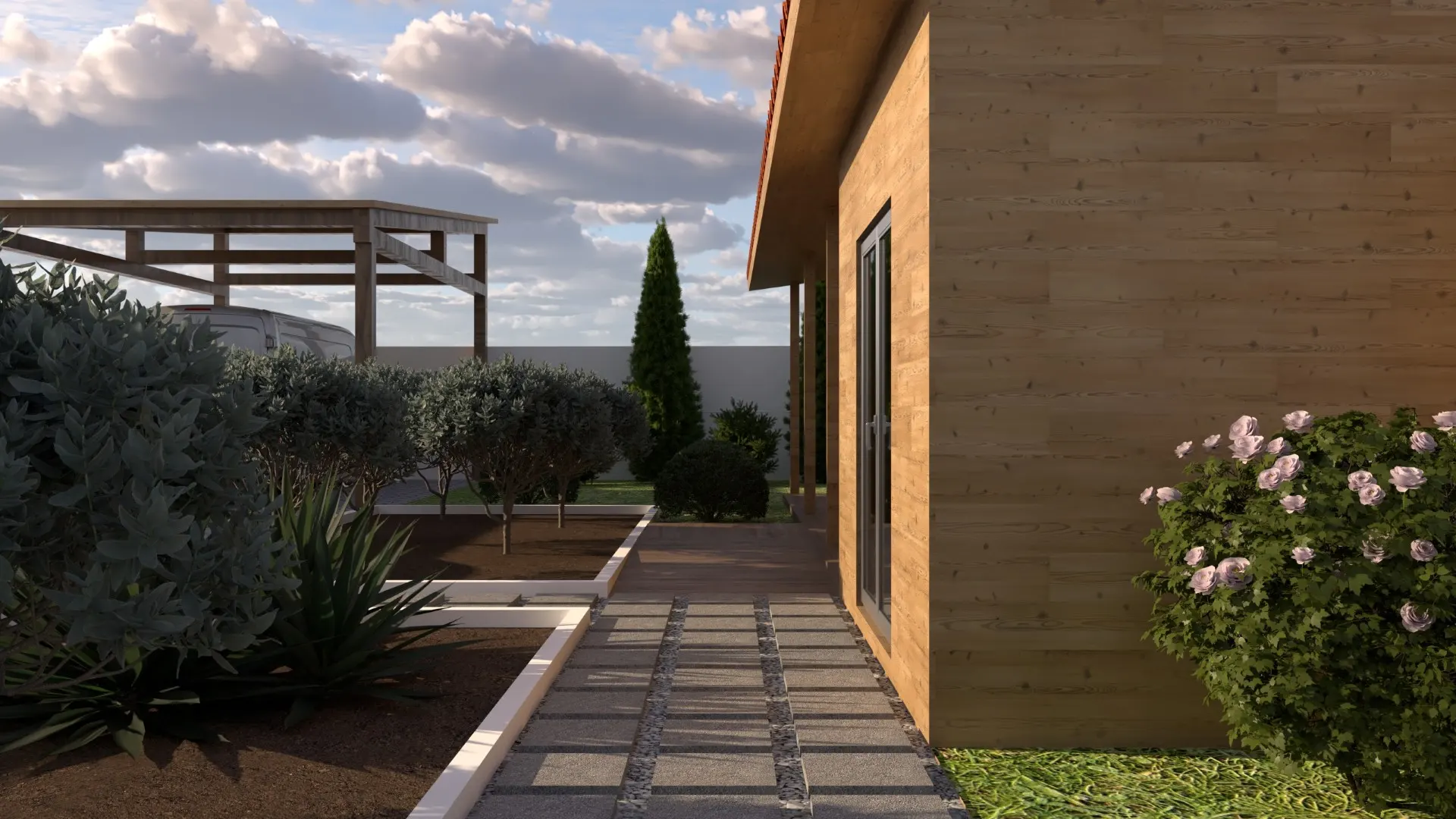 A habitação é concebida como um refúgio contemporâneo com alma rústica, onde materiais naturais, como a madeira e a cerâmica, dialogam com a paisagem envolvente e proporcionam uma experiência de habitar centrada no conforto, na luz natural e na vivência ao ar livre.