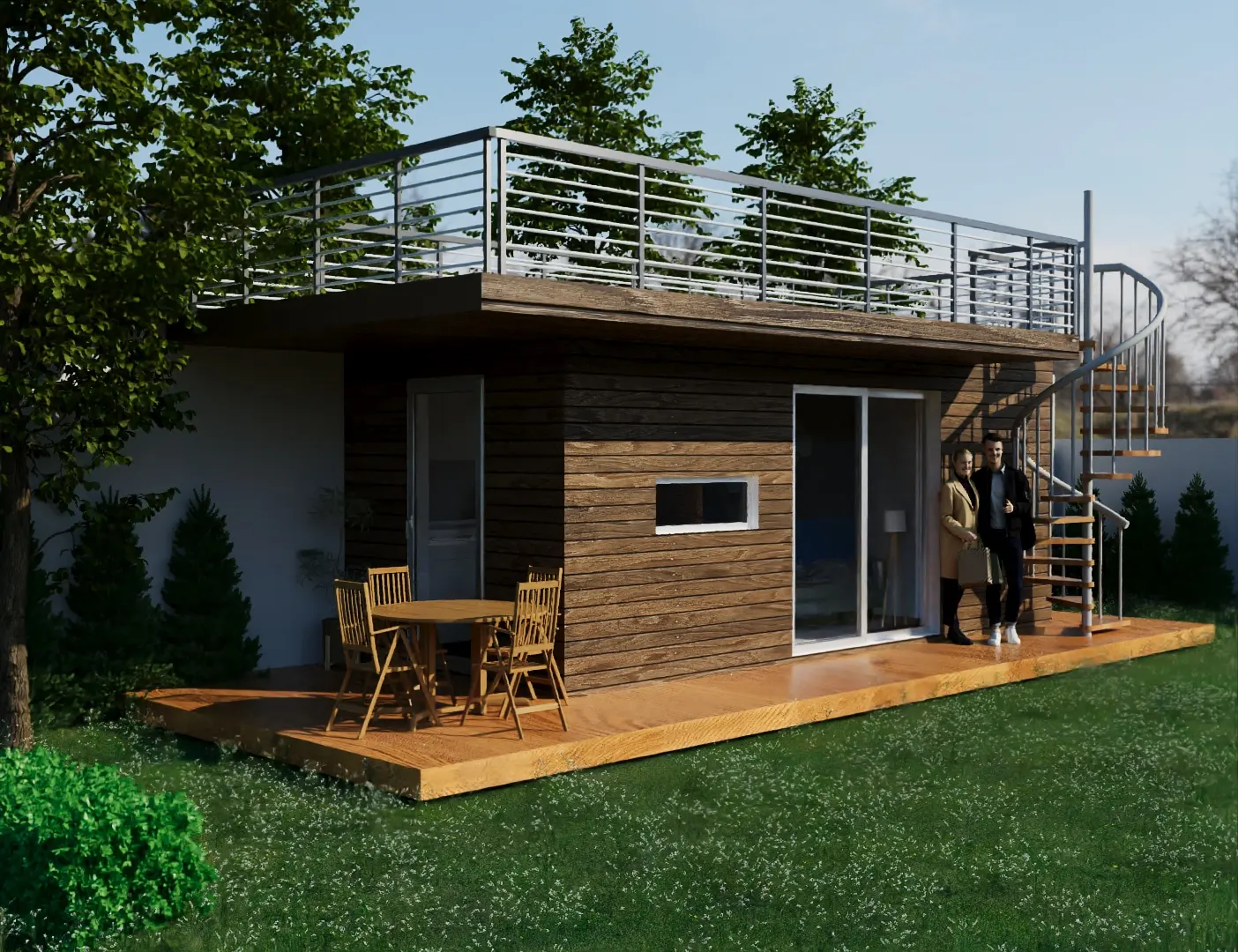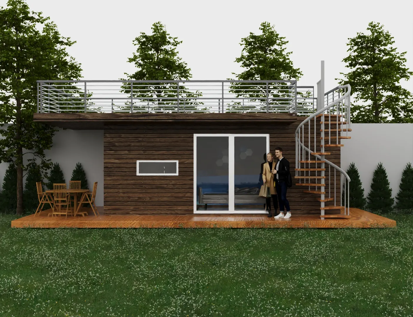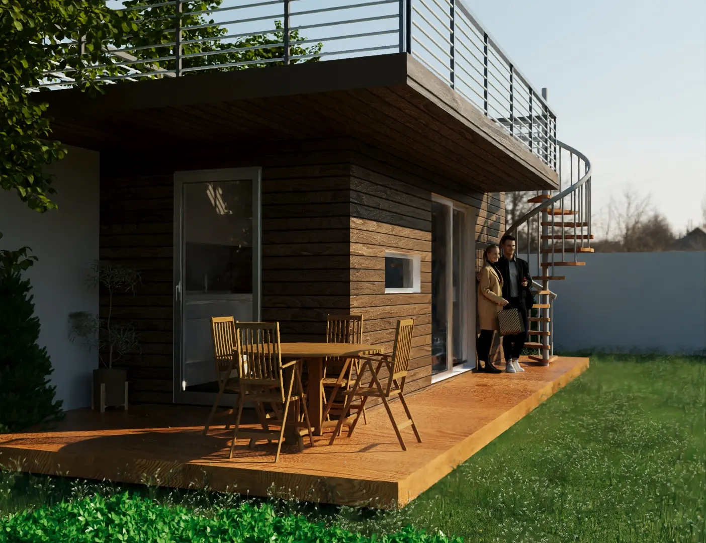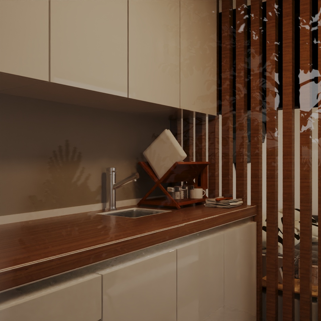 Este showroom apresenta um conceito de arquitetura compacta e sofisticada, focado em conforto, funcionalidade e design moderno. O espaço combina madeira natural com elementos contemporâneos, criando um ambiente acolhedor e elegante.