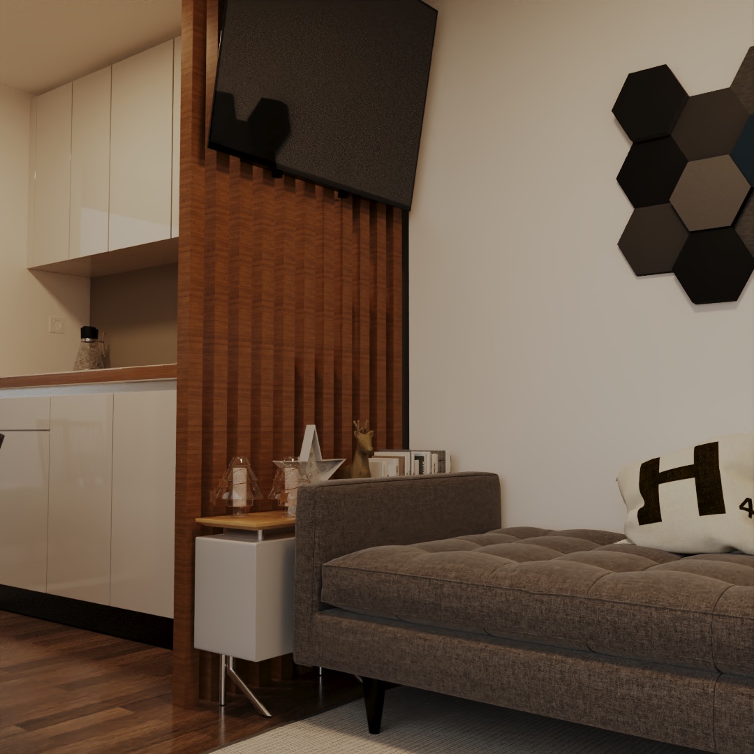 O showroom é projetado para demonstrar como pequenos espaços podem ser otimizados sem perder sofisticação. A madeira desempenha um papel central, tanto na estrutura quanto nos detalhes de acabamento, conferindo um toque natural e aconchegante. O uso de tons neutros, iluminação indireta e mobiliário minimalista reforça a sensação de amplitude e conforto.